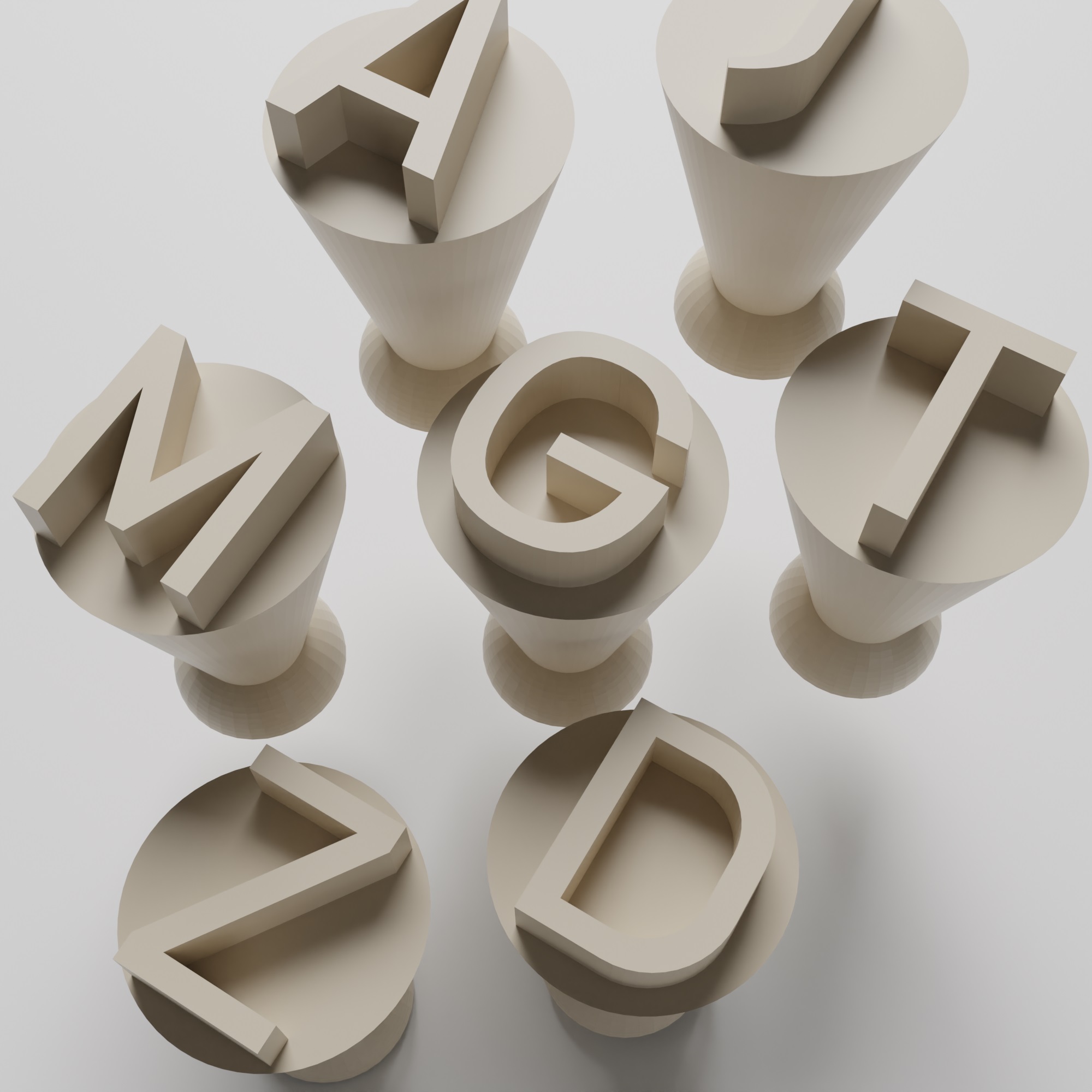 Contém: 26 carimbos (A, B, C, D, E, F, G, H, I, J, K, L, M, N, O, P, Q, R, S, T, U, V, X, W, Y, Z)