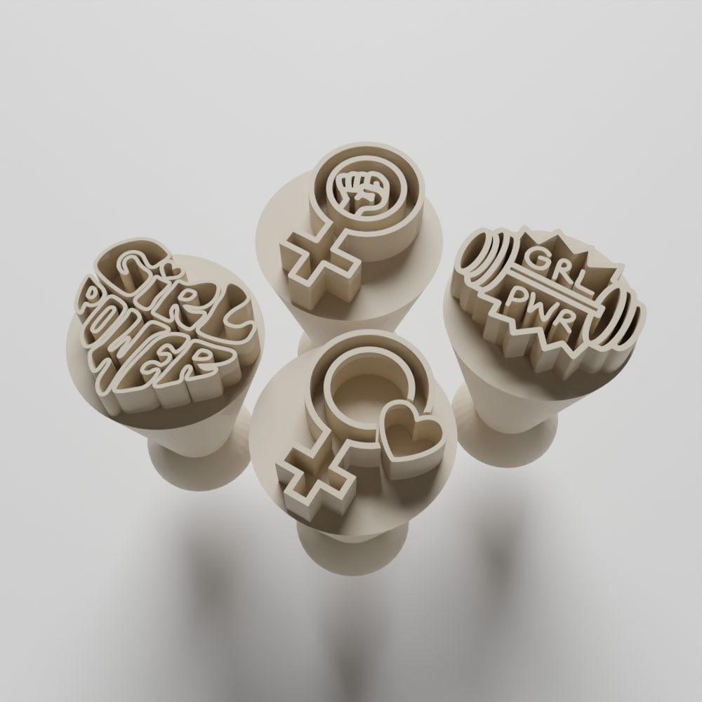 Contém: 4 Carimbos (Girl 1, Girl 2, símbolo com mão e símbolo com coração)