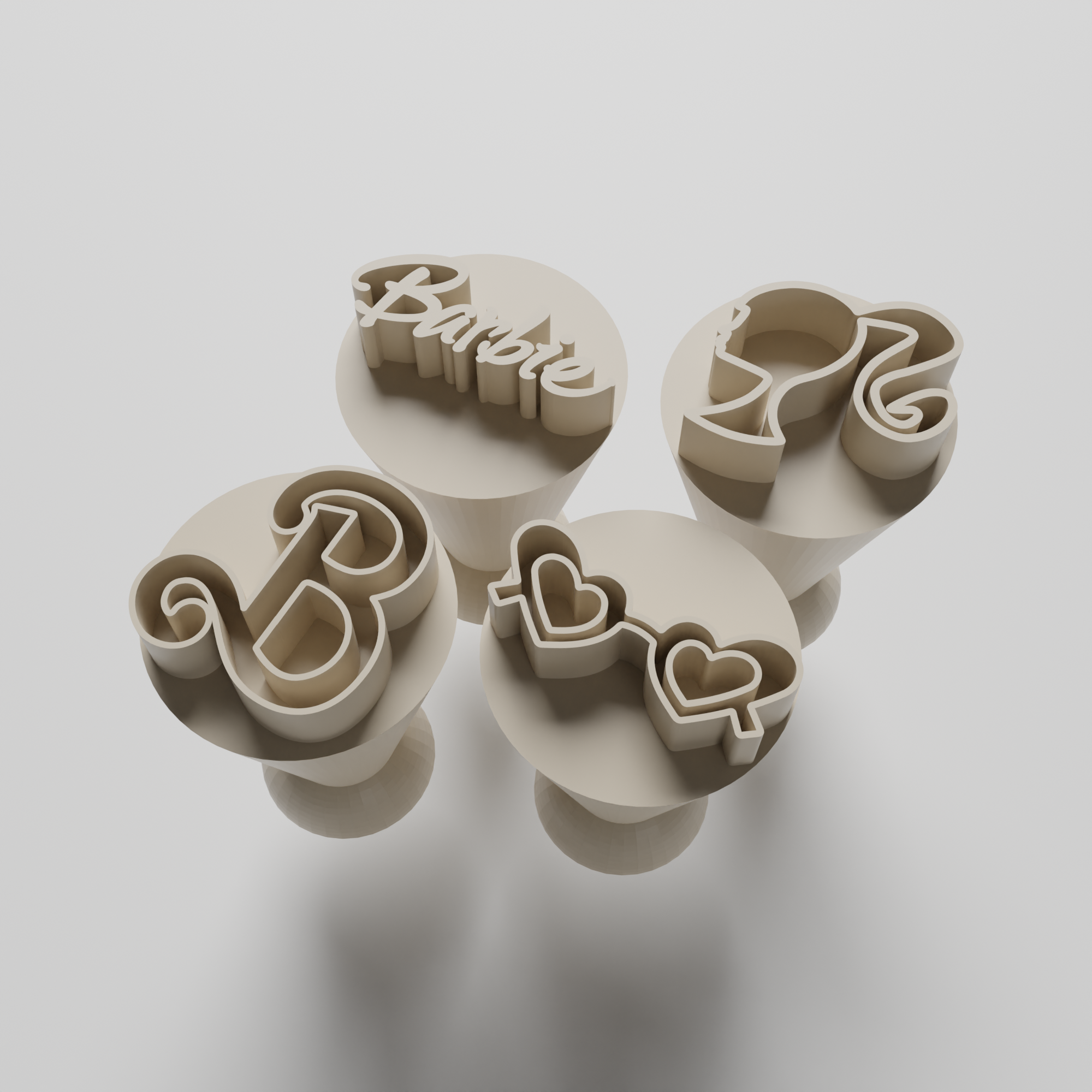 Contém: 4 Carimbos (Oculos, B, logo Barbie e Barbie)