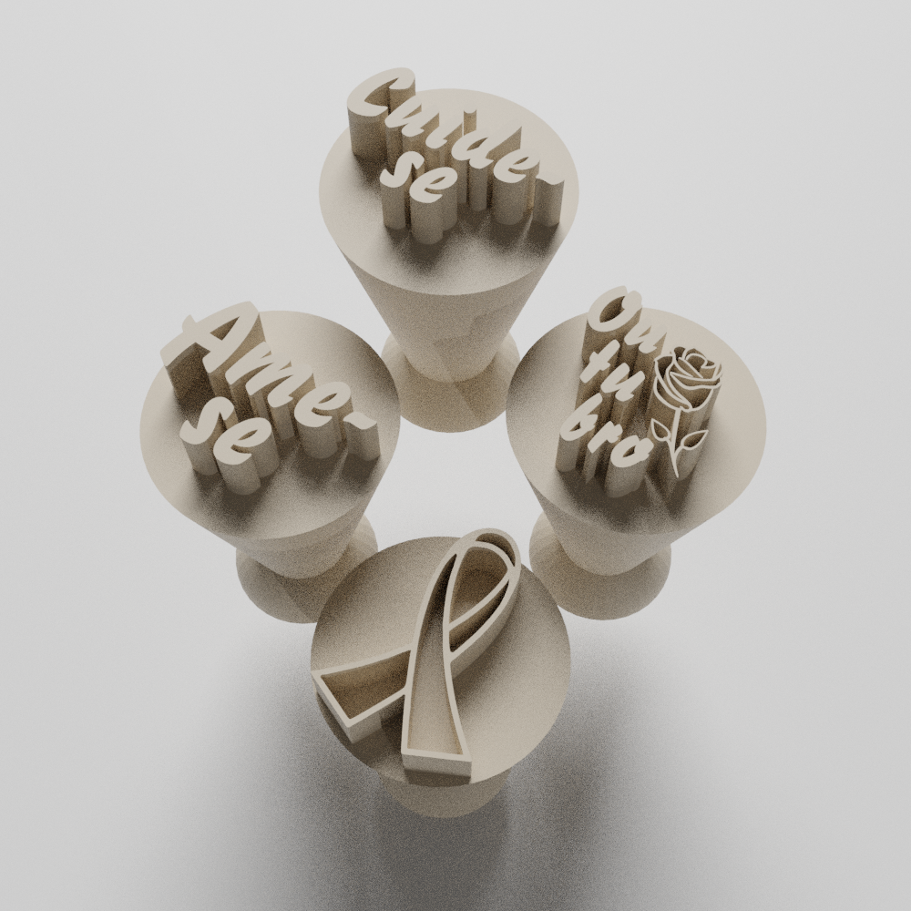 Contém:4 carimbos (Ame-se, cuide-se, laço e outubro rosa)
