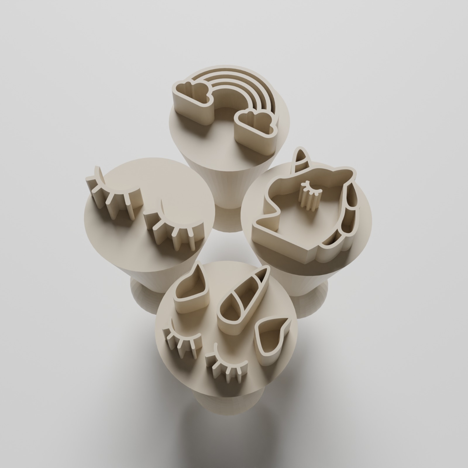Contém: 4 Carimbos (Unicórnio, rosto unicórnio, cílios e nuvem)