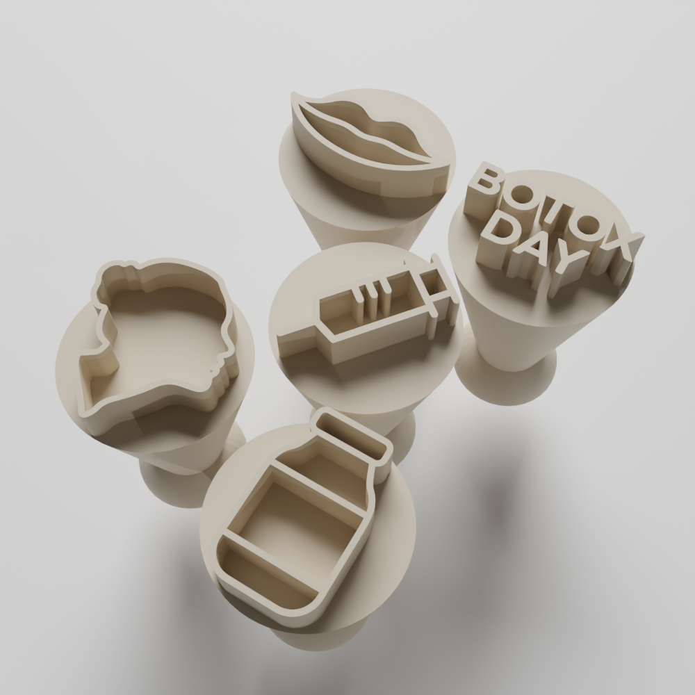 Contém: 5 Carimbos (Ampola, escrita, labio, seringa e silhueta)