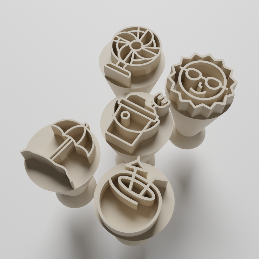 Contém: 5 Carimbos (Sol, guarda sol, ventilador, coco e baldinho)