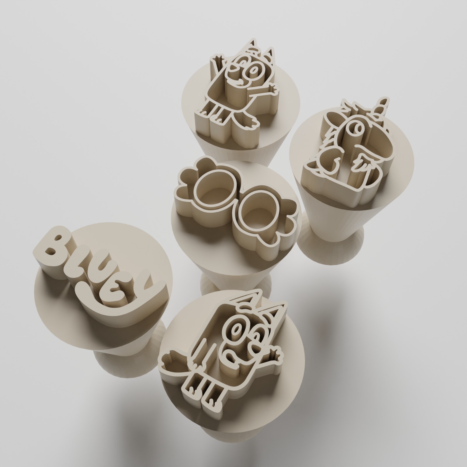 Contém: 5 Carimbos (Bluey, Bingo, logo, oculos e unicornio)