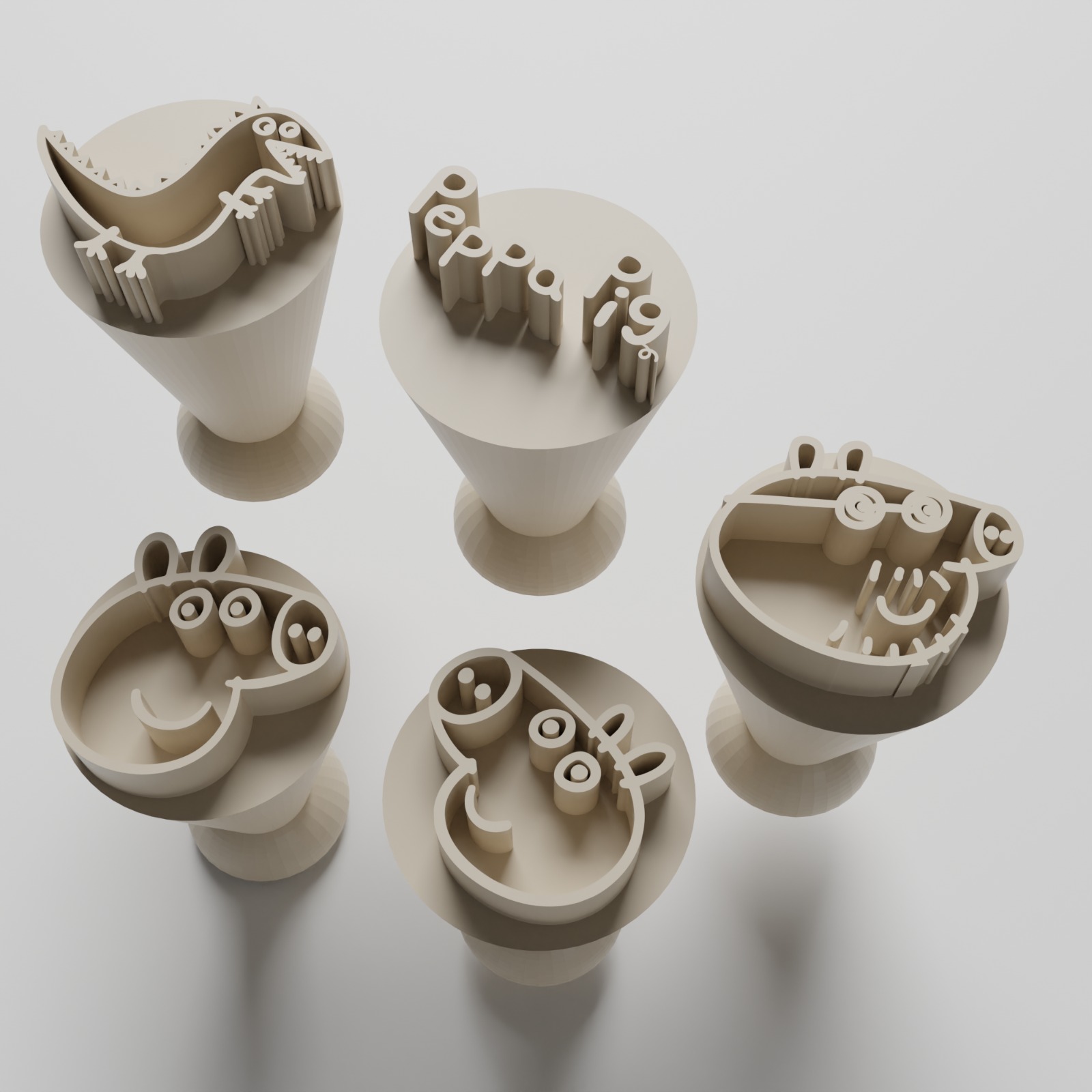 Contém: 5 carimbos (Logo, dino, George, Peppa e papai pig)