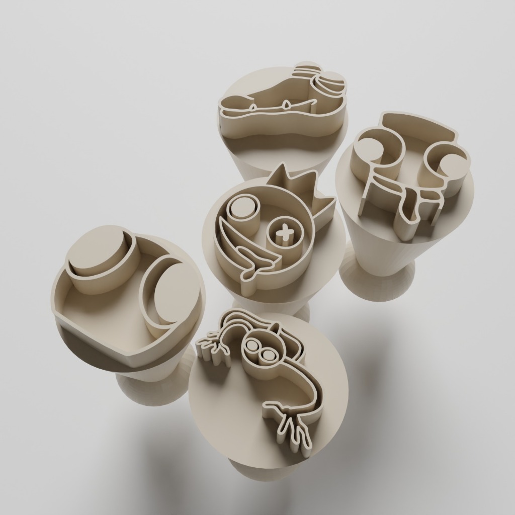 Contém: 5 Carimbos (Rainbow Friends Azul, Vermelho, Roxo, Verde e Laranja)