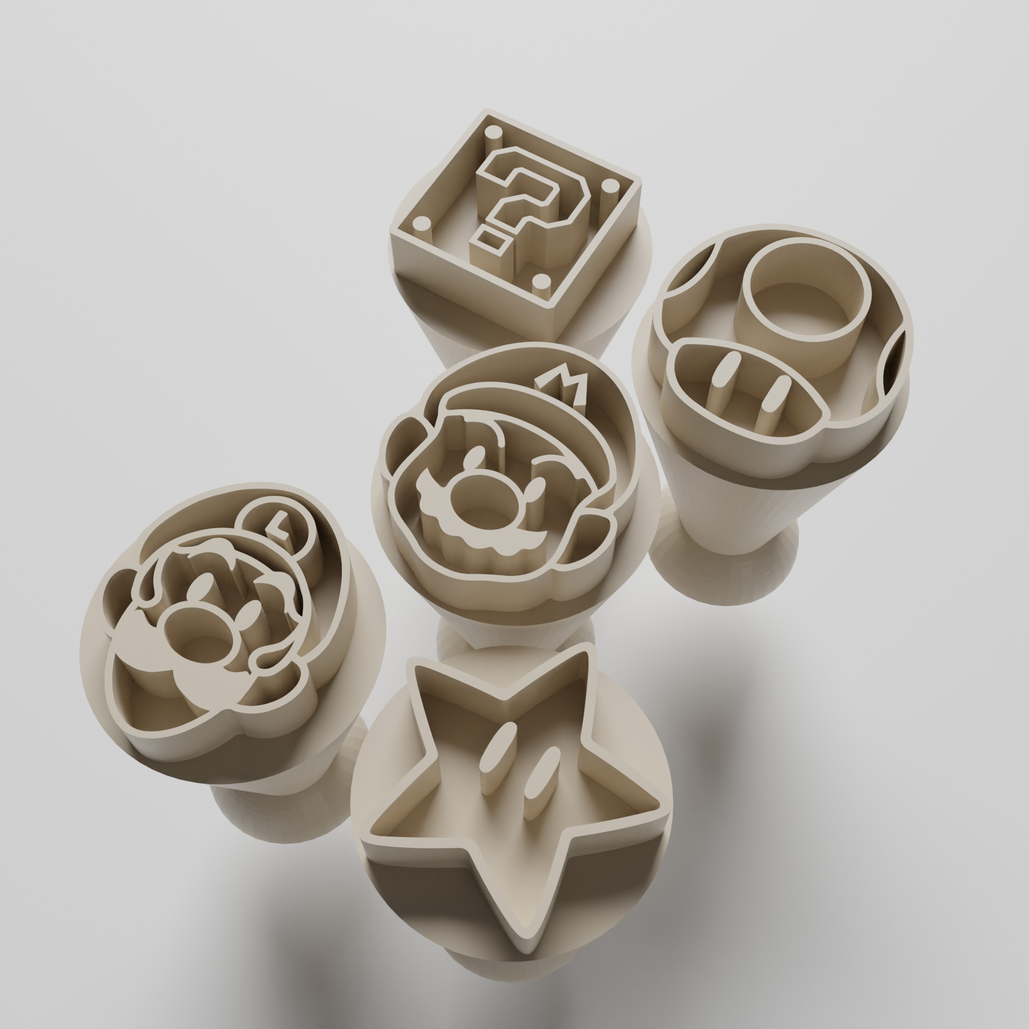 Contém: 5 Carimbos (Mario, Luigi, estrela, cogumelo e caixa)