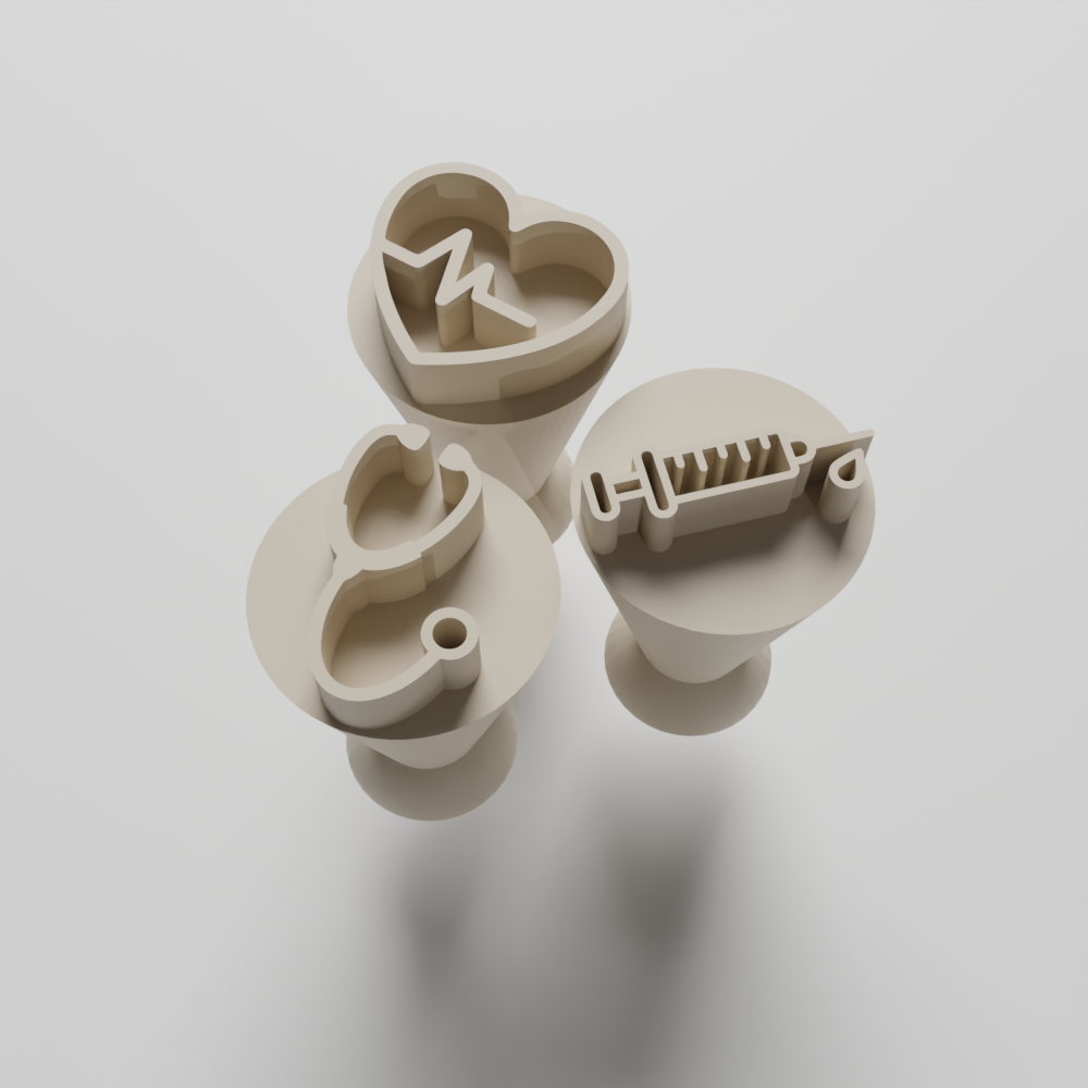 Contém: 3 carimbos (Coração, estetoscópio e seringa)