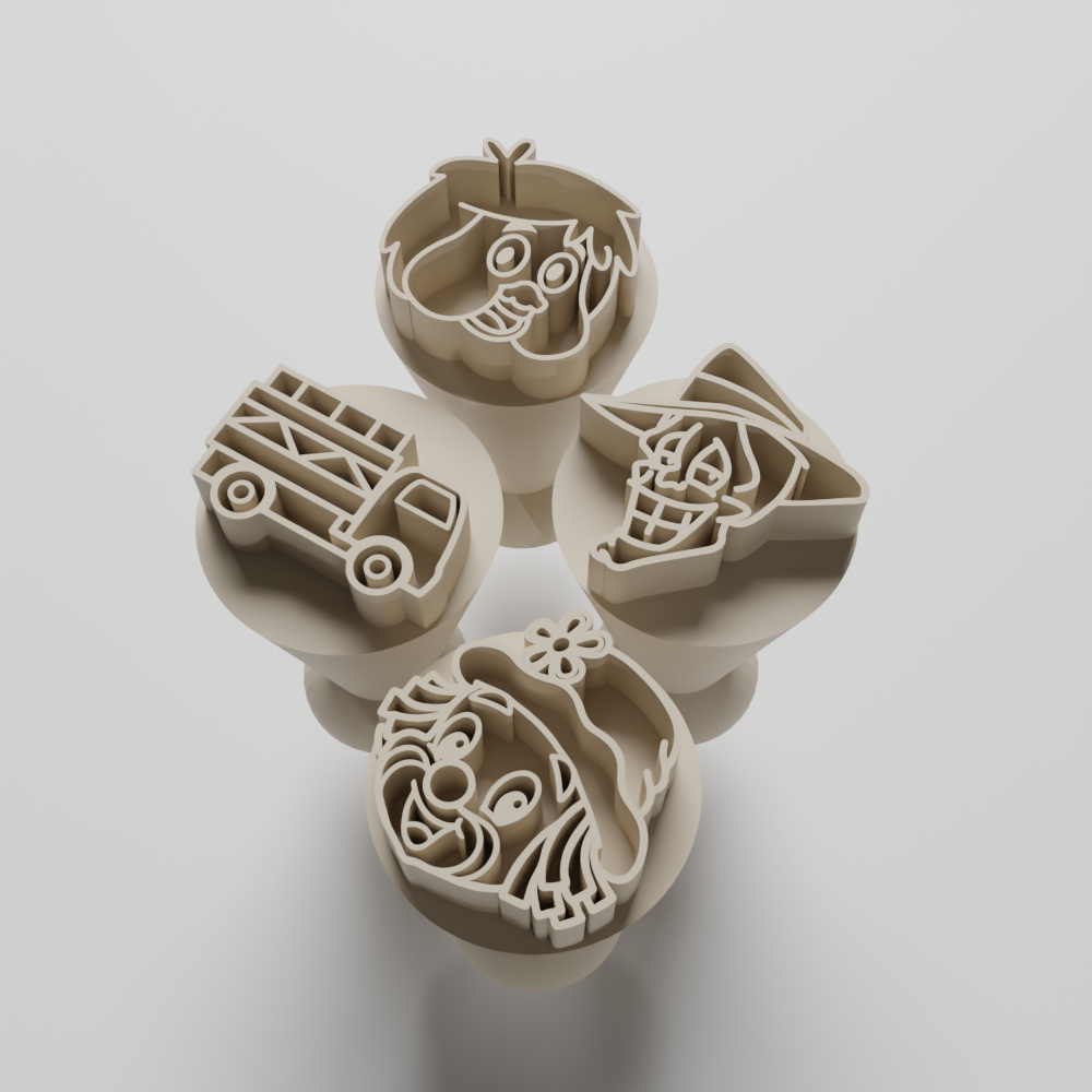 Contém: 4 carimbos (Carreta, fofão, mascara e patati)