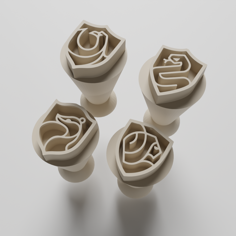Contém: 4 Carimbos (Cornival, Grifinoria, Lufa Lufa e Sonserina)