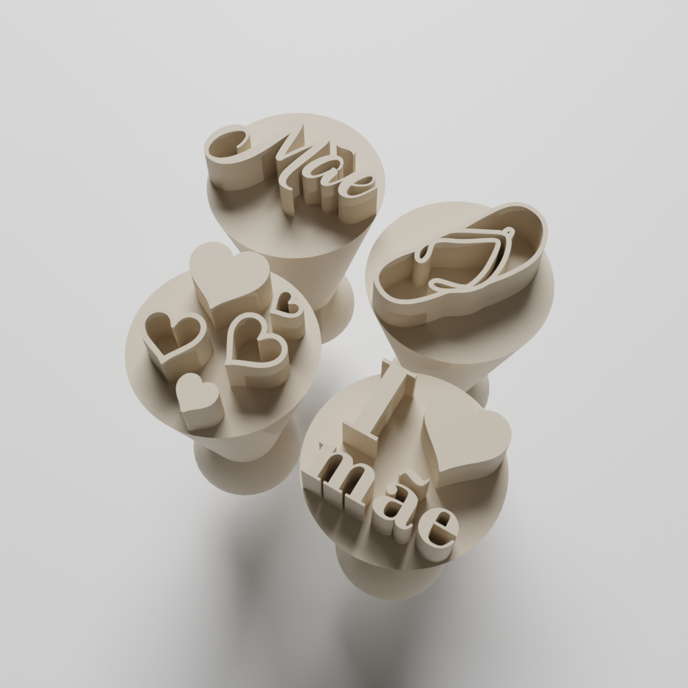 Contém: 4 carimbos (Te amo, mãe, chinelo e coração)