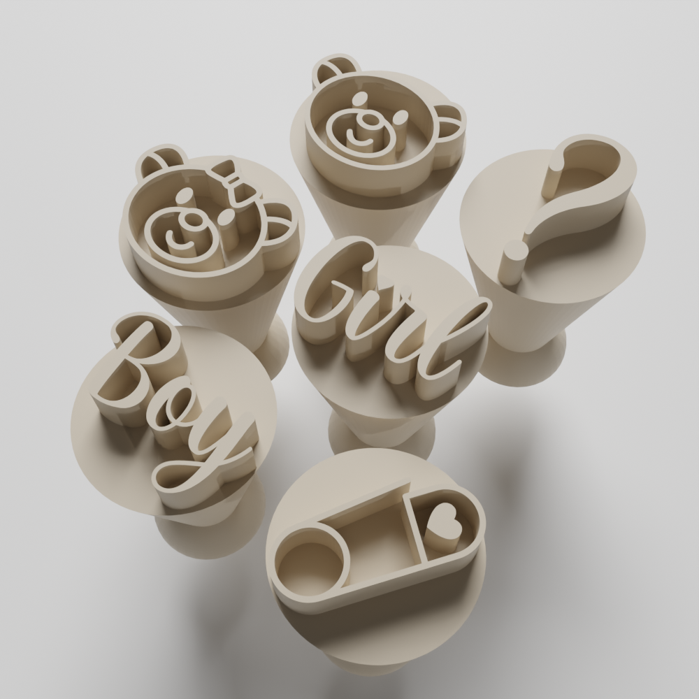 Contém: 6 Carimbos (Girl, boy, ?, ursinho, ursinha e alfinete)