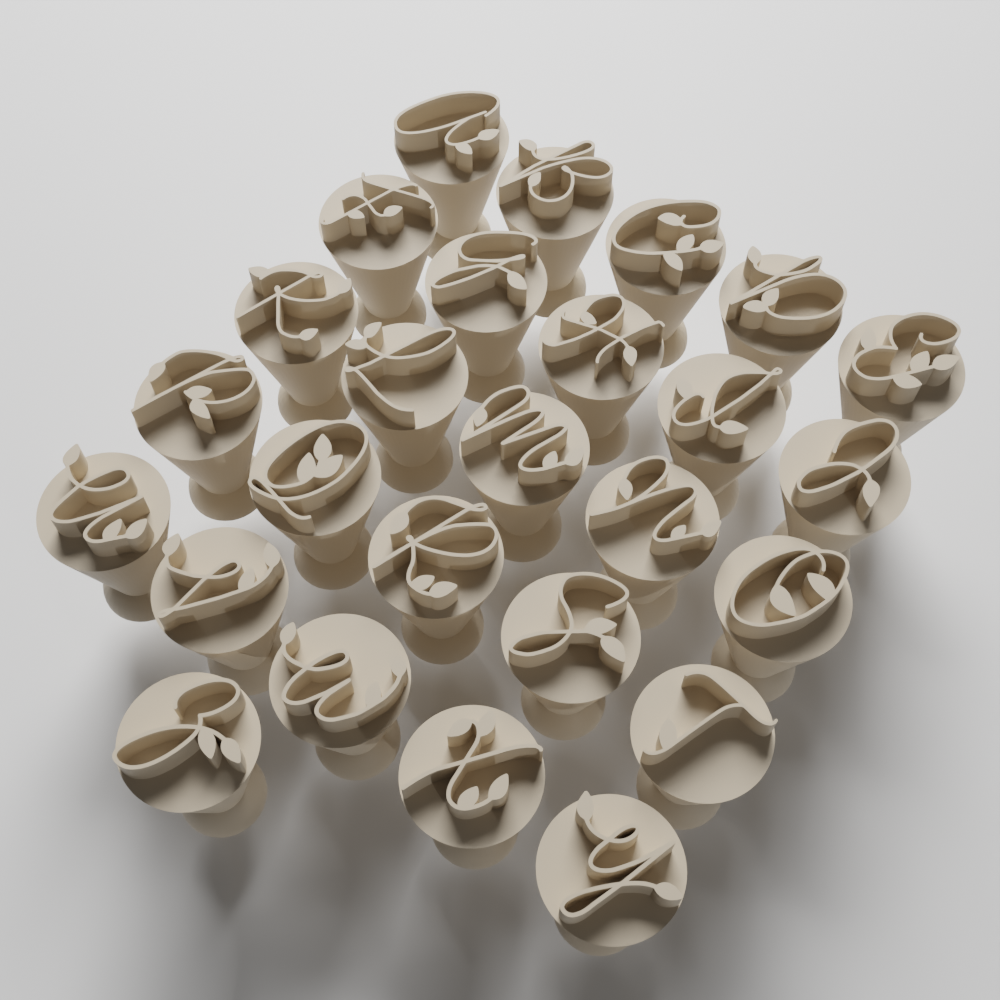 Contém: 26 carimbos (A, B, C, D, E, F, G, H, I, J, K, L, M, N, O, P, Q, R, S, T, U, V, X, W, Y, Z)