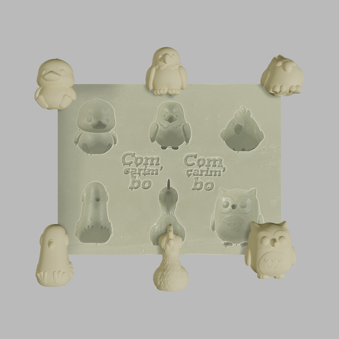 Ideal para artesanato, confeitaria e trabalhos criativos, este molde de silicone possui base de 8x6 cm, com cavidades que variam de 1,5 a 2,5 cm, conforme o desenho. Fabricado em silicone flexível e resistente, proporciona fácil desmoldagem, alta durabilidade e reprodução fiel dos detalhes.