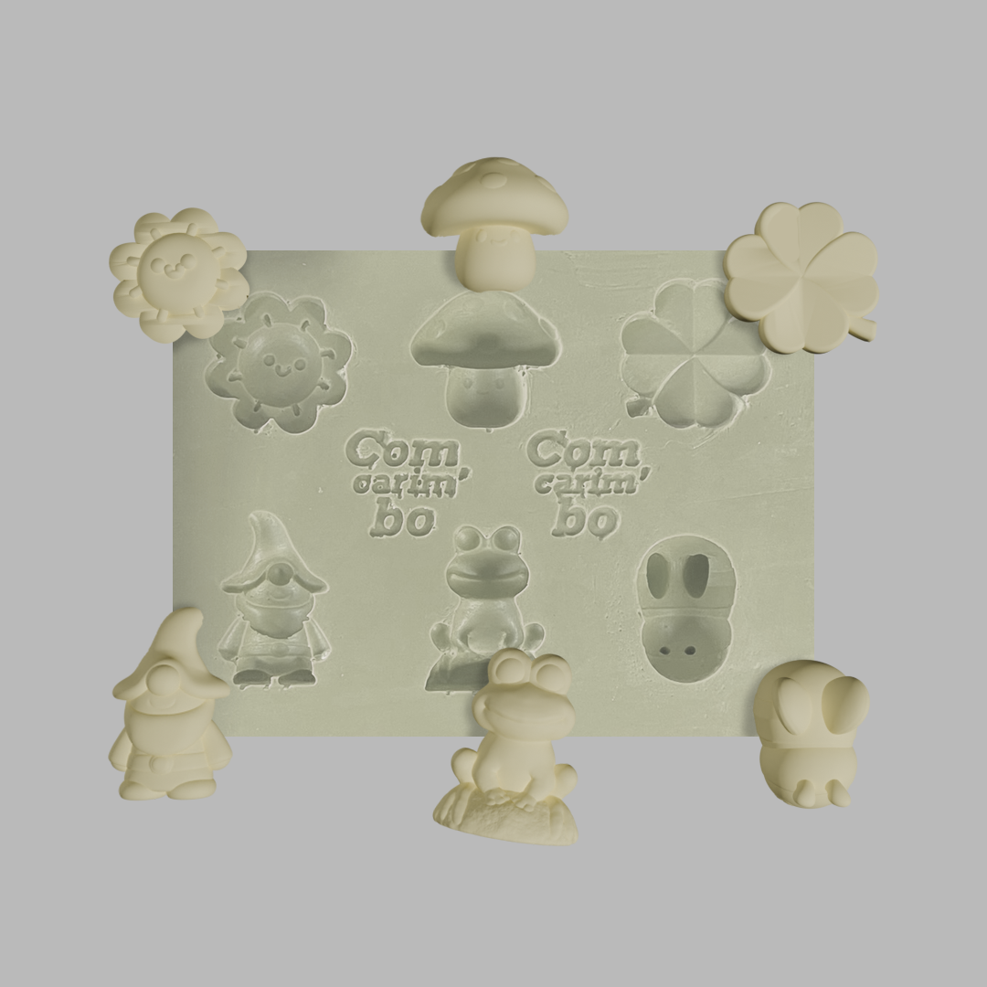 Ideal para artesanato, confeitaria e trabalhos criativos, este molde de silicone possui base de 8x6 cm, com cavidades que variam de 1,5 a 2,5 cm, conforme o desenho. Fabricado em silicone flexível e resistente, proporciona fácil desmoldagem, alta durabilidade e reprodução fiel dos detalhes.